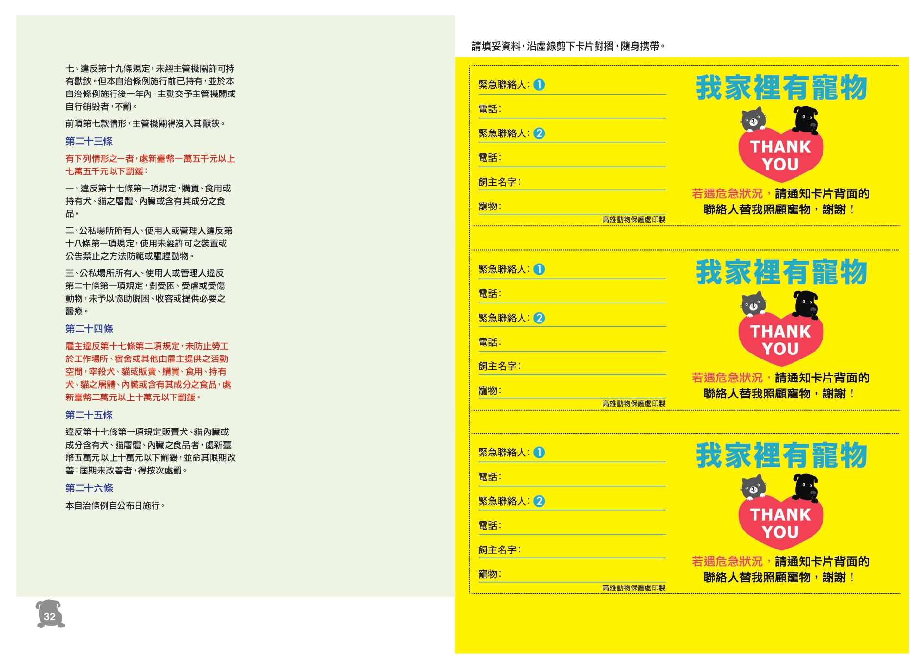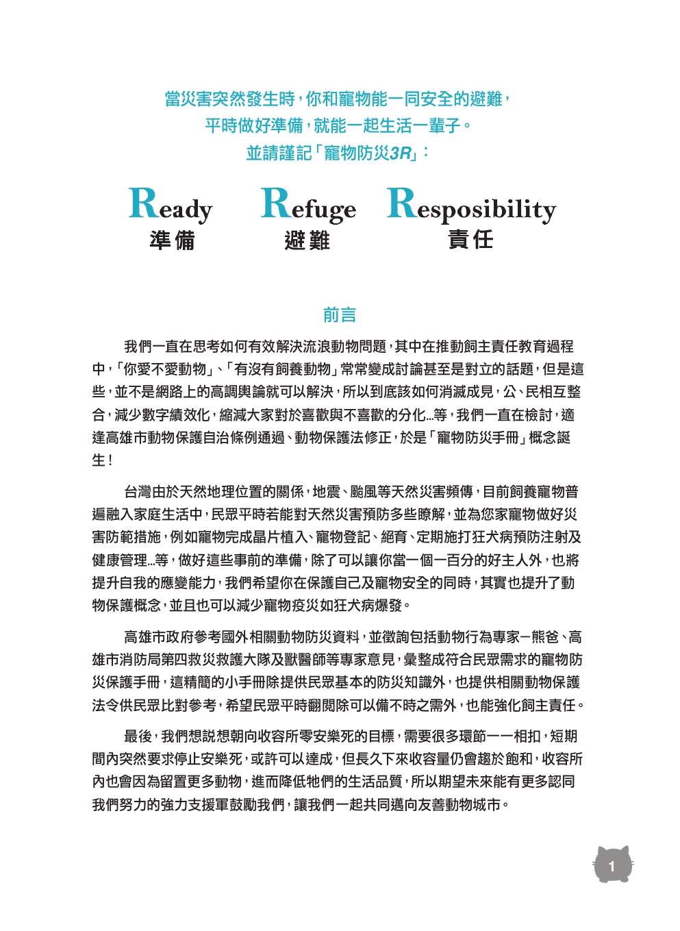 高雄市寵物防災保護宣導手冊(109年)PDF下載