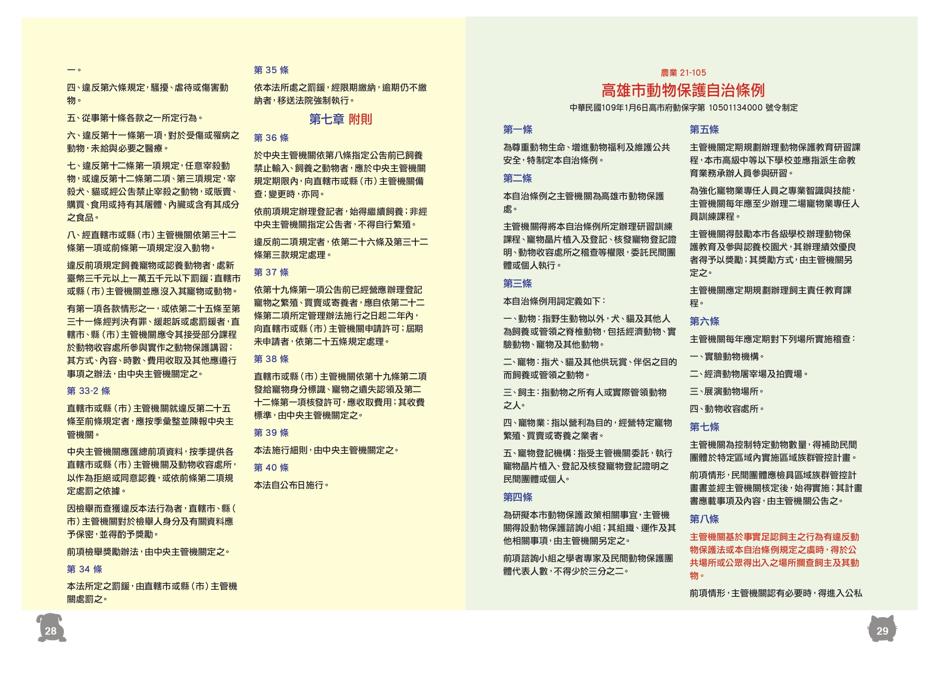 高雄市寵物防災保護宣導手冊(109年)